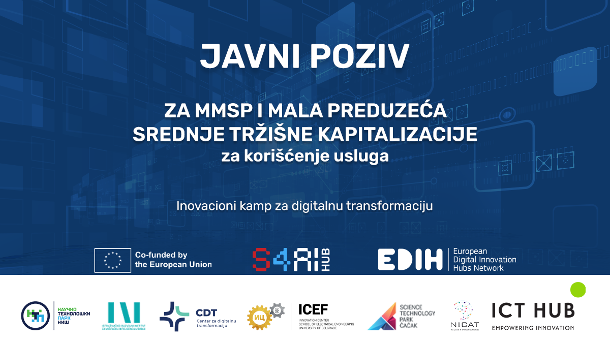 S4AI Hub je otvorio Javni poziv za mikro, mala i srednja preduzeća, kao i mala preduzeća srednje tržišne kapitalizacije, za učešće u programu „Inovacioni kamp za digitalnu transformaciju“ u okviru inicijative S4AI_HUB – Serbian European Digital Innovation Hub on AI.